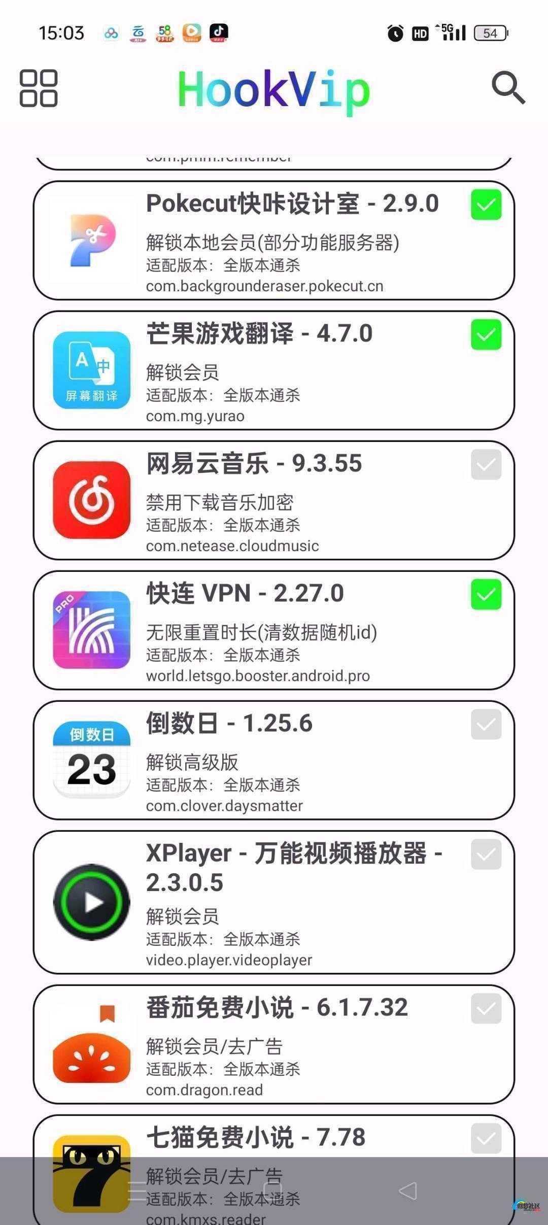无需root即可解锁几十款热门软件会员 帮你省下不少钱 【滑稽] 【应用名称】hookVIP 【应用版本】4.0.4 【应用大小】5.0.3m 【应用介绍】HookVip是一款功能强大的插件工具,它能够解锁各种软件的VIP模块,让你轻松享受会员服务。这款软件以其出色的兼容性和轻量级设计,成为了解锁会员功能的首选。 【特别说明】HookVip作为一个模块工具,需要与特定的框架搭配使用。以下是详细的使用步骤:框架支持:HookVip支持以下框架:LSPosed LSPatch 太极 应用转生。Root权限与LSPosed框架:如果你的设备拥有Root权限并且刷入了LSPosed框架,你应当已经熟悉如何使用xposed模块,可以跳过以下步骤。LSPatch使用步骤:进入LSPatch框架,在底栏找到管理并点击。点击右下角的加号,如果你是首次使用,系统会提示你选择一个路径来保存修补后的文件。如果你已经使用过LSPatch,点击选择已安装的应用程序,找到你想要解锁的软件。点击软件后,再点击右下角的开始修补,最后进行安装。如果安装失败,请先卸载原版软件,再安装你修补后的软件。安装完成后,在管理页面找到对应的软件,将模块应用到该软件上。链接里面的LSPatch已经适配安卓15了可以自行测试一下文字教程看不懂就看视频教程吧再看不懂剁手手 【怒]不用管那个什么shiziku连不连接的直接去你选择的目录安装就行推荐选择 storage emulated 0 MT2 apks 因为可以直接用mt管理器提取安装包,用fpa就比较方便了,那些某60加固和签名强的就用虚拟机吧,正好链接里面有个不卡99的vmos。你们要的番茄教程: 【原创修改】秋葵视频播放器私密视频播放加密去广告纯净版## 【分享】迅雷年费版极速下载完美精简去更新去广告纯净版## 【分享】追书神器复活版全网爆款小说一网打尽解锁终身VIP## 【分享】番茄通通杀所有番茄系列软件解锁SVIP会员去广告## 【分享】必剪v2.89.3UP主都在用的剪辑神器完全免费# 即可获取拿走吱一声不然闪退用不了拿走吱一声不然闪退用不了拿走吱一声不然闪退用不了